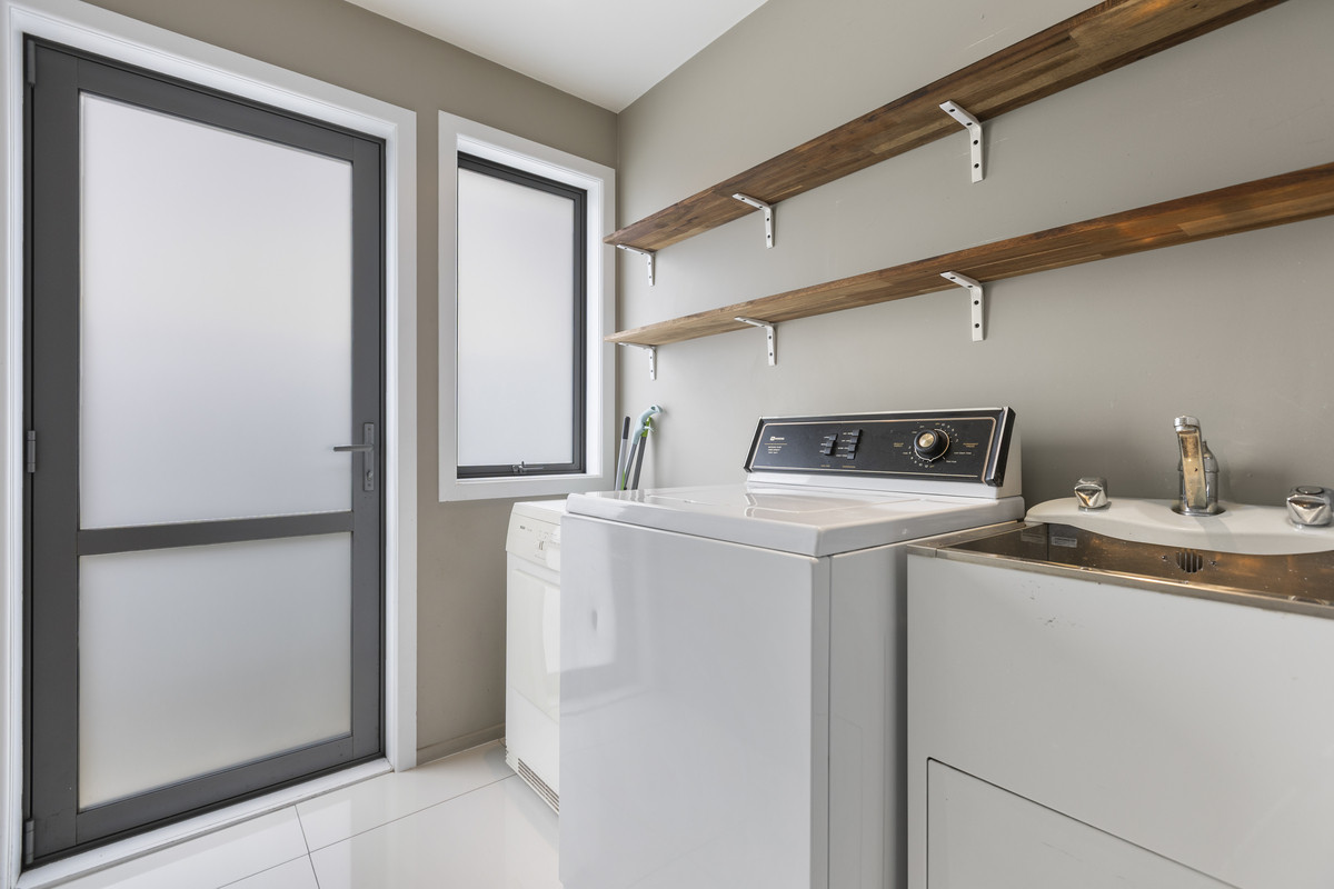The well-appointed family bathroom includes both a bath and shower, and there’s a separate laundry with external access for everyday convenience.